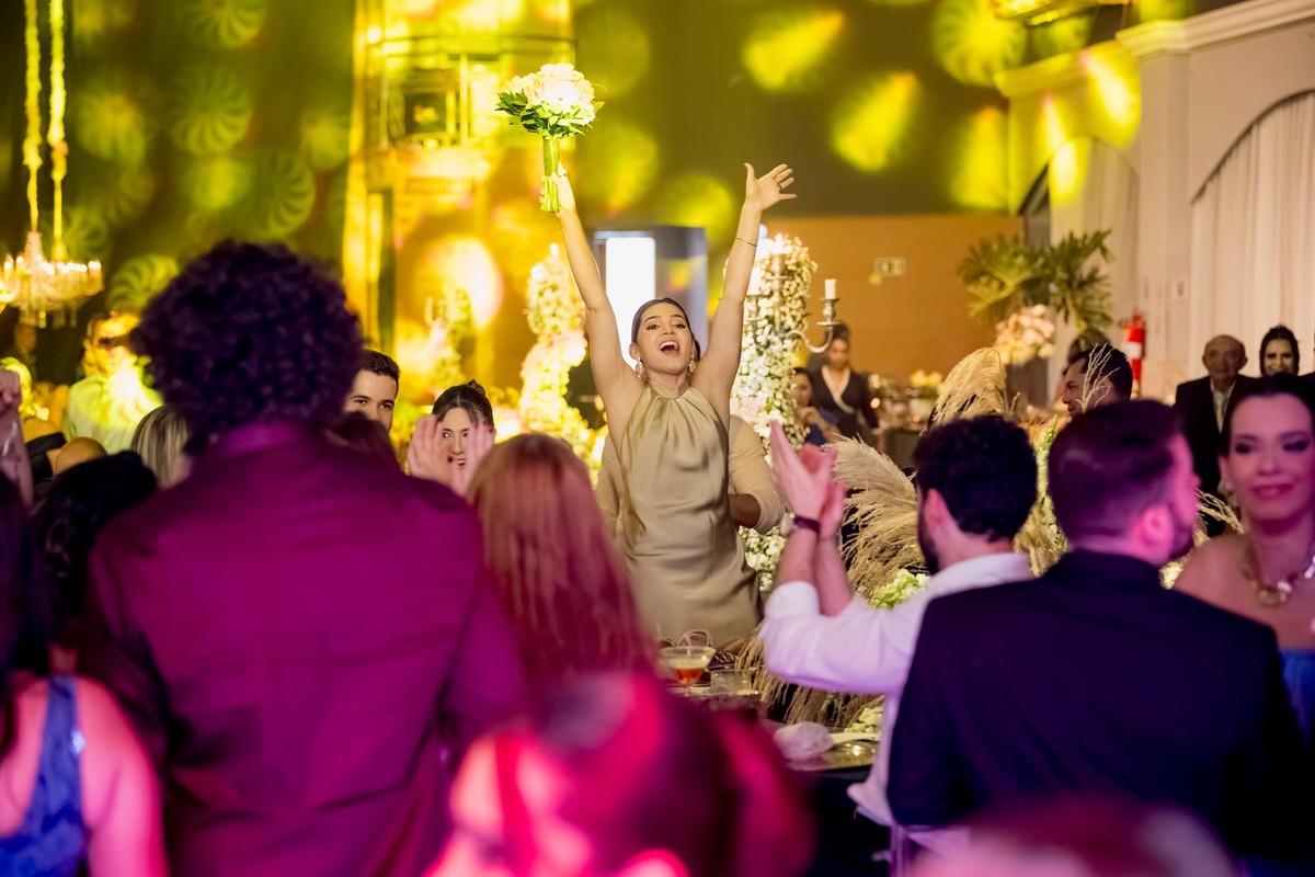 O salão estava repleto de detalhes que refletiam a personalidade do casal. A animação da festa foi garantida pelas apresentações musicais de Carol Sant’Anna, Ferro na Boneca e Junior Bahya, que mantiveram a pista cheia até o fim da madrugada. A dança dos noivos ao som de “Can’t Help Falling in Love” emocionou a todos, e a jogada do buquê trouxe aquela dose de descontração e expectativa.