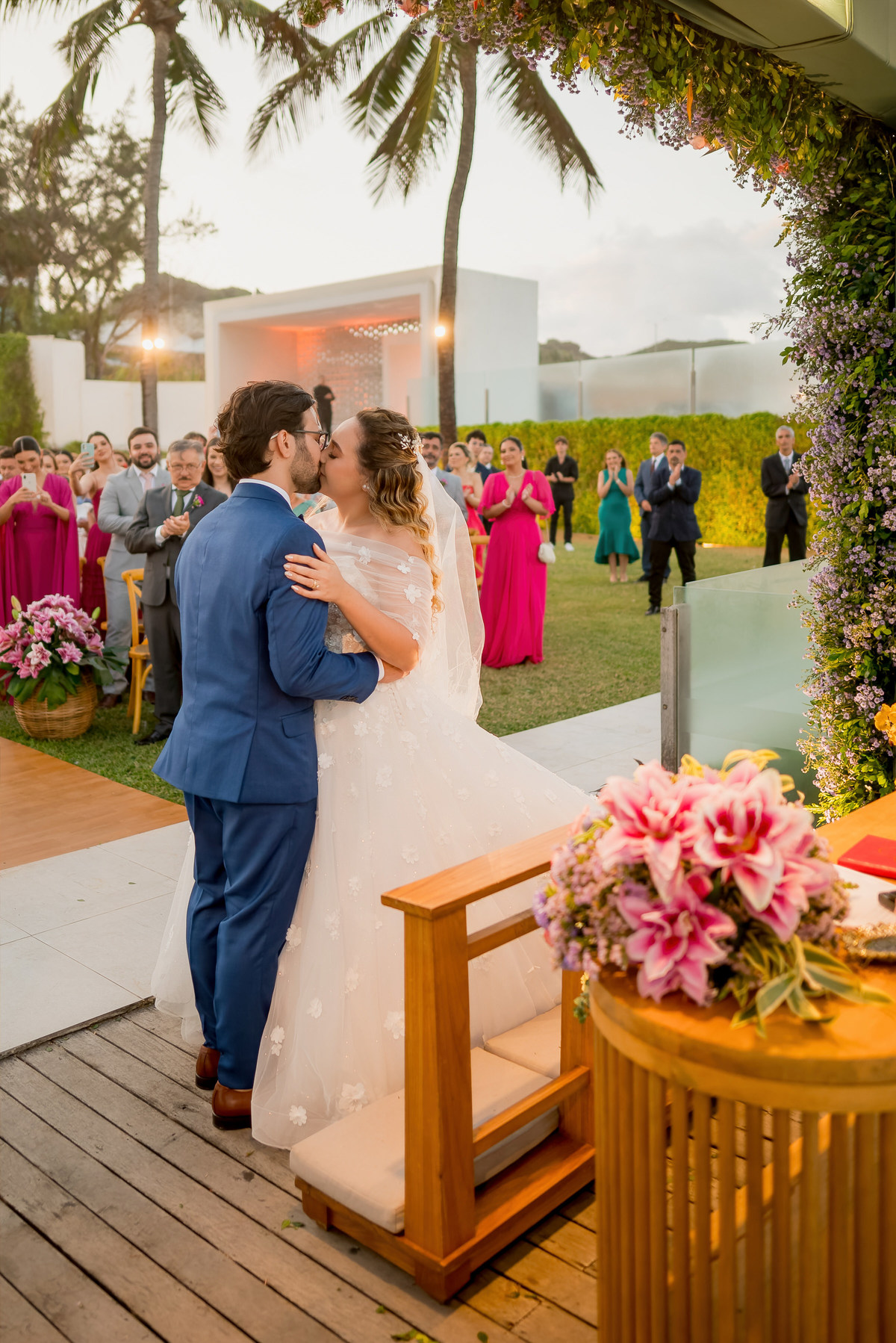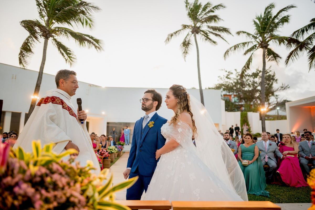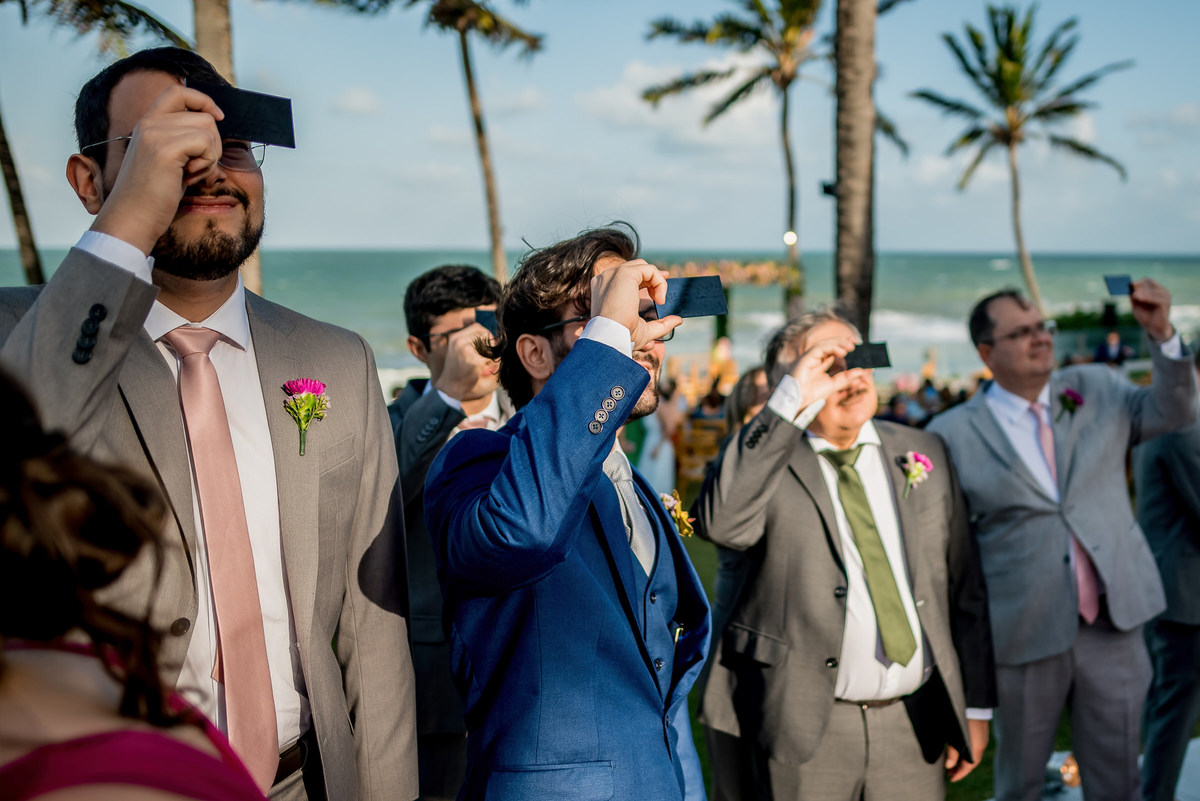 "Um conto de amor sob o eclipse solar, Carol e Caio disseram 'sim' com o mar como testemunha. O olhar mágico de Max Soares, os cliques encantadores de Yanne Barreto, a atmosfera dos sonhos pela Dm Decor, o sabor irresistível do Nilson Buffet, a iluminação perfeita da Lume, e o vídeo emocionante de Jubart capturaram cada momento. A beleza radiante de Carol, cortesia de Thalyson Salvino. ✨💍🌅 #CasamentoCarolECaio #AmorEterno #EclipseDoAmor"