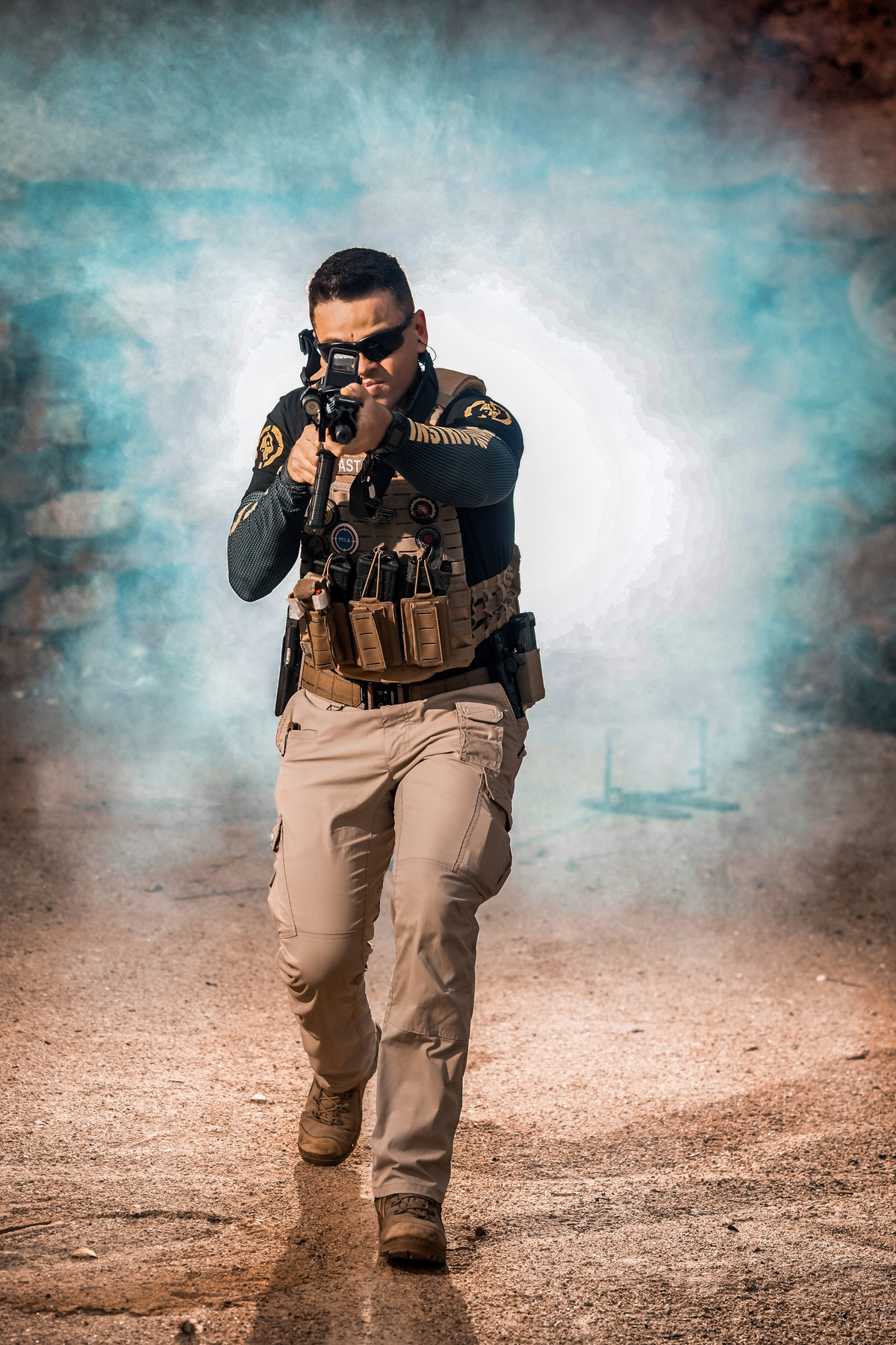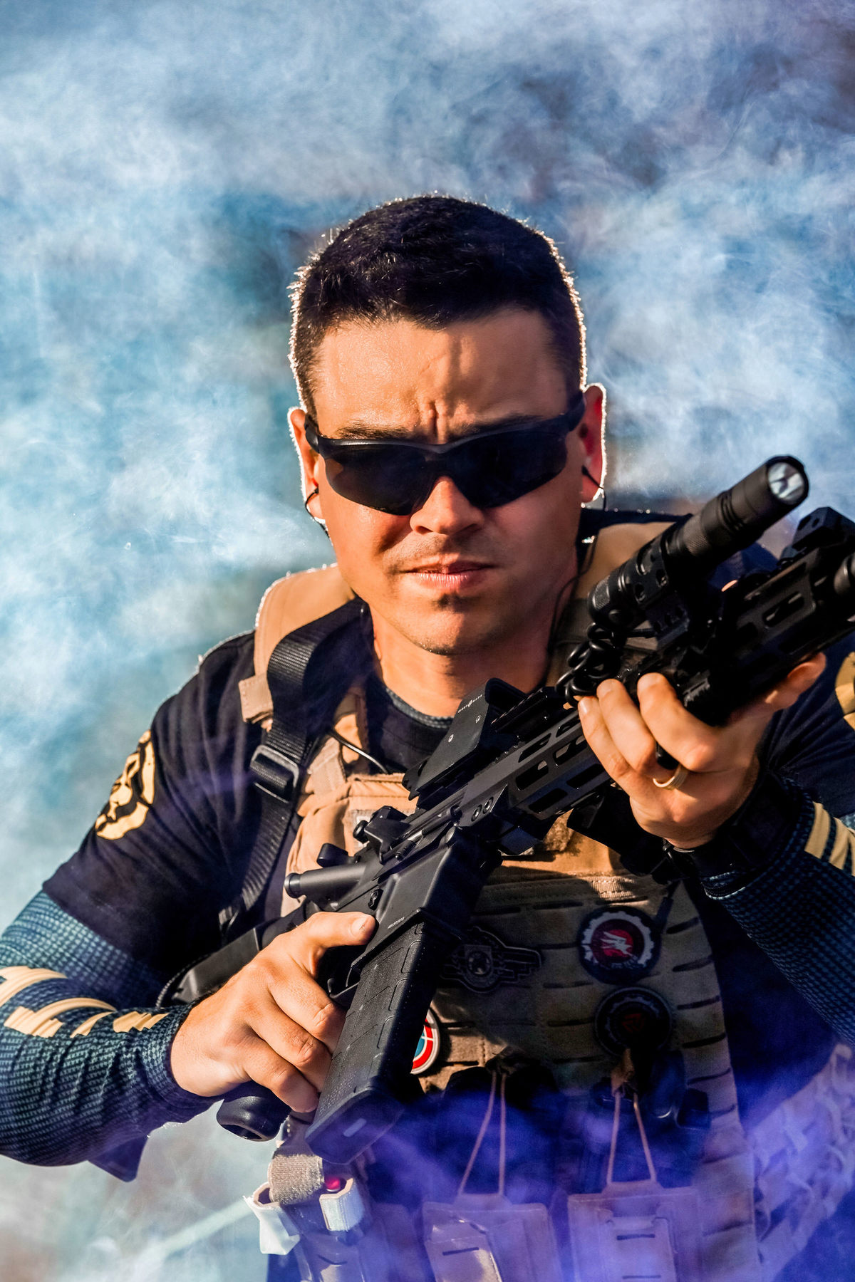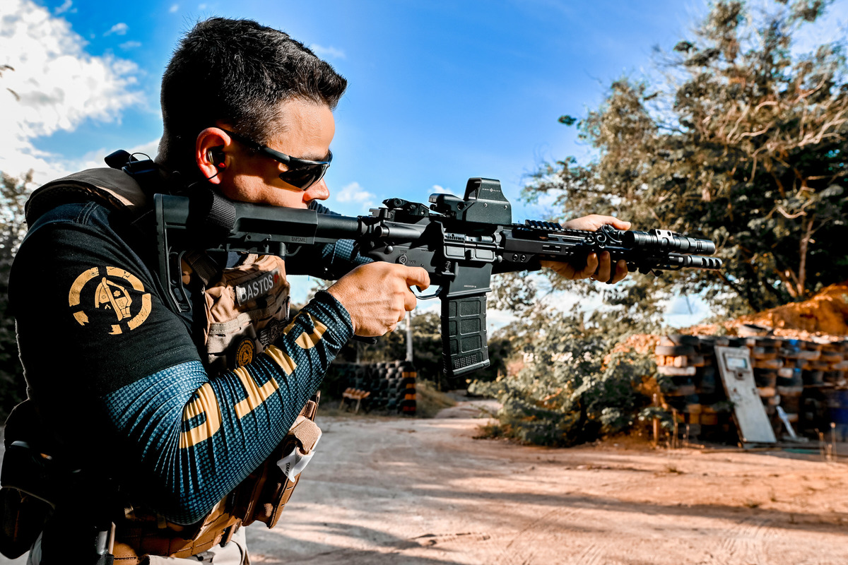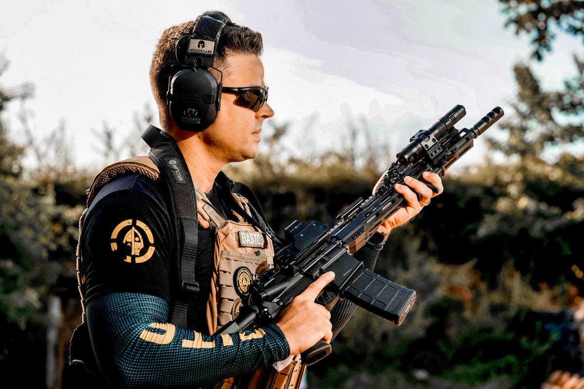 Dicas para instrutores de armamento e tiro sobre como transmitir uma boa imagem em um ensaio fotográfico de perfil profissional.